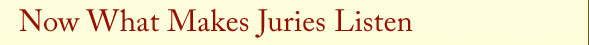 Another focus is to give you more effective techniques for voice, body language and personal approaches, even your own image in court. With today’s cases becoming more technical and complex, you’ll find a special chapter on expert witness testimony— how to prepare your experts, qualify them to jurors, what works to make scientific and technical data clear, logical and persuasive and how to help experts’ evidence survive a hostile cross. Now What Makes Juries Listen will make you rethink every aspect of the trial from the jurors’ point of view will cause you to understand what else is going on while you’re talking and explaining. And many new approaches are right there to help you reshape some of the things you automatically do. The Table of Contents Here’s what prominent lawyers are saying about the book: – Director, Office of Legal Education